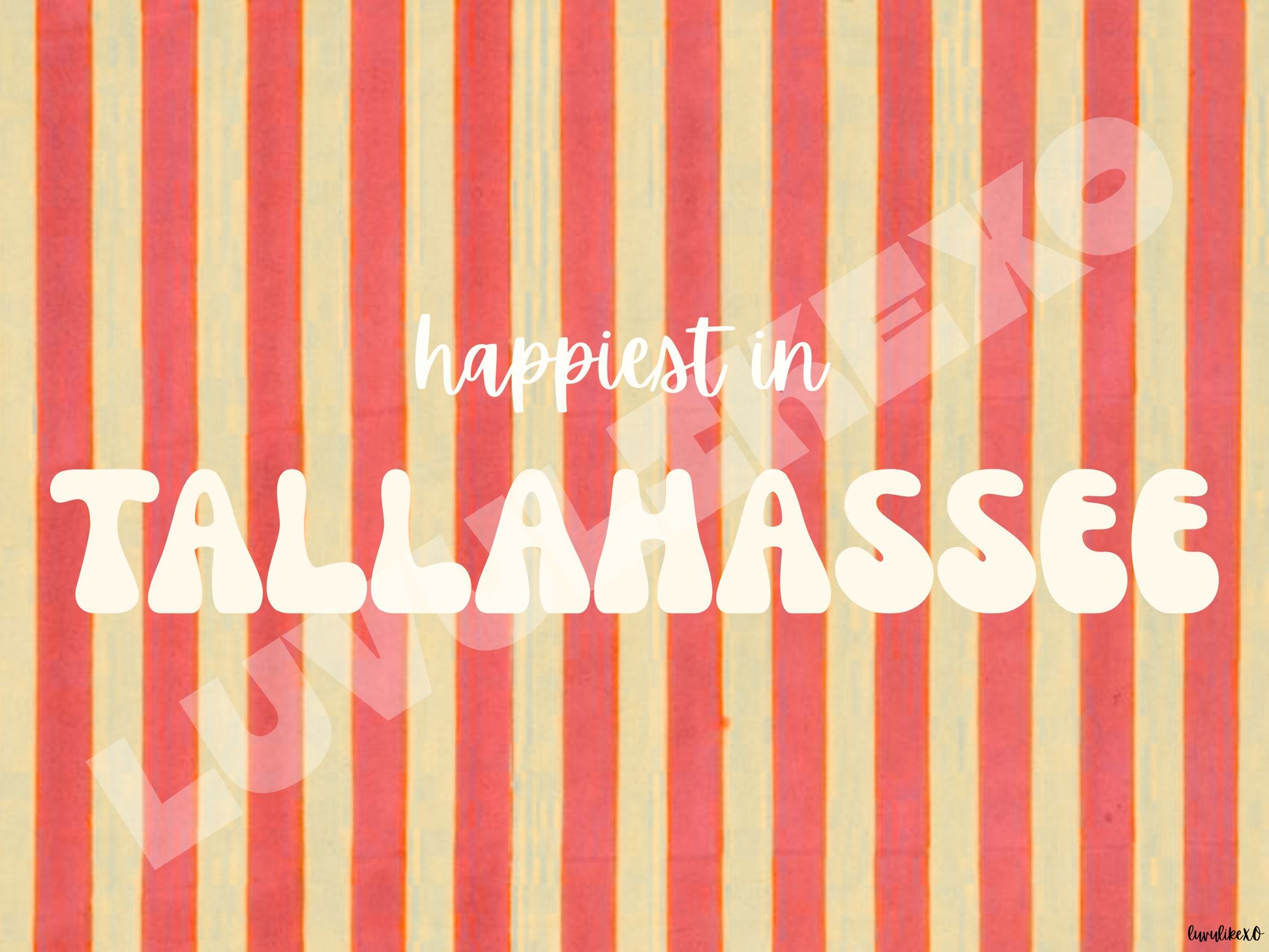 Our happy prints are on a striped background with your favorite city!! Whether it’s your hometown, where you go to college, or maybe just your favorite place to visit! These are the perfect addition to add to your home!